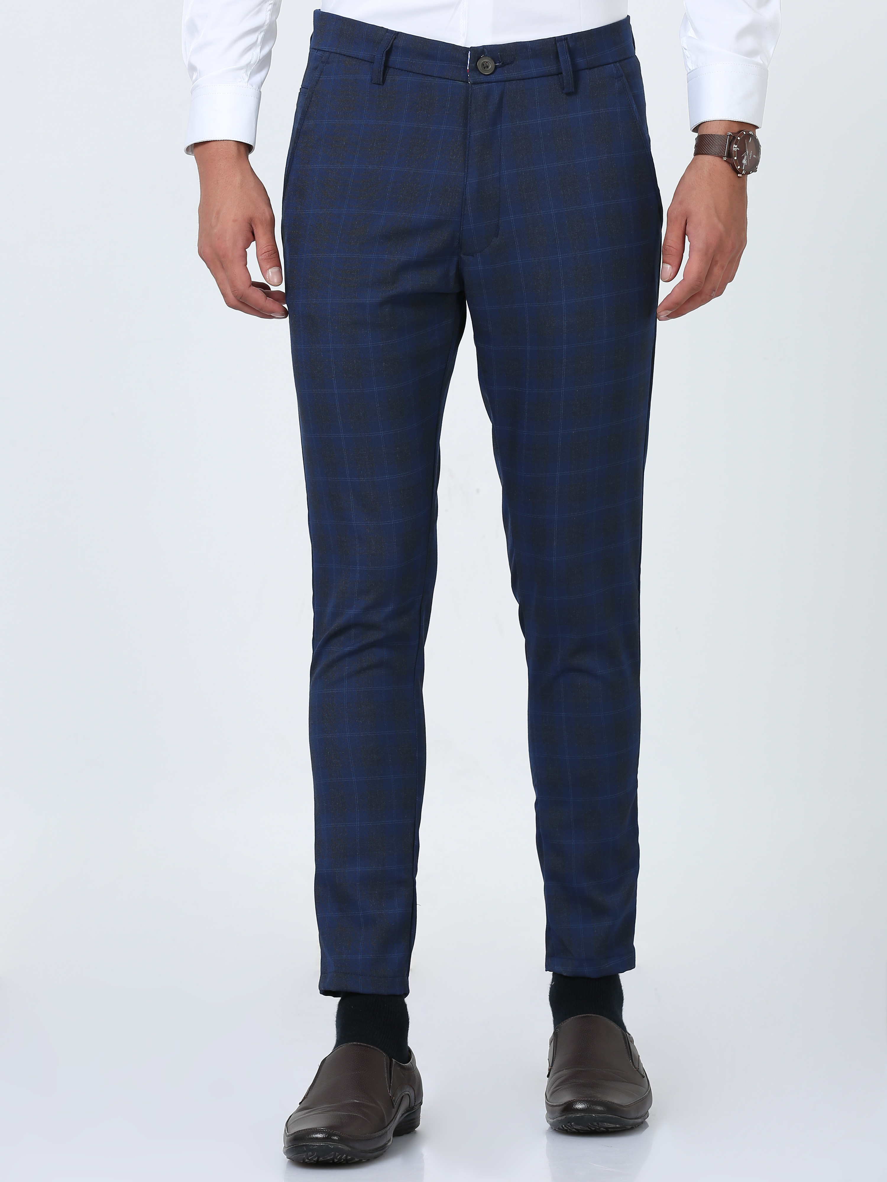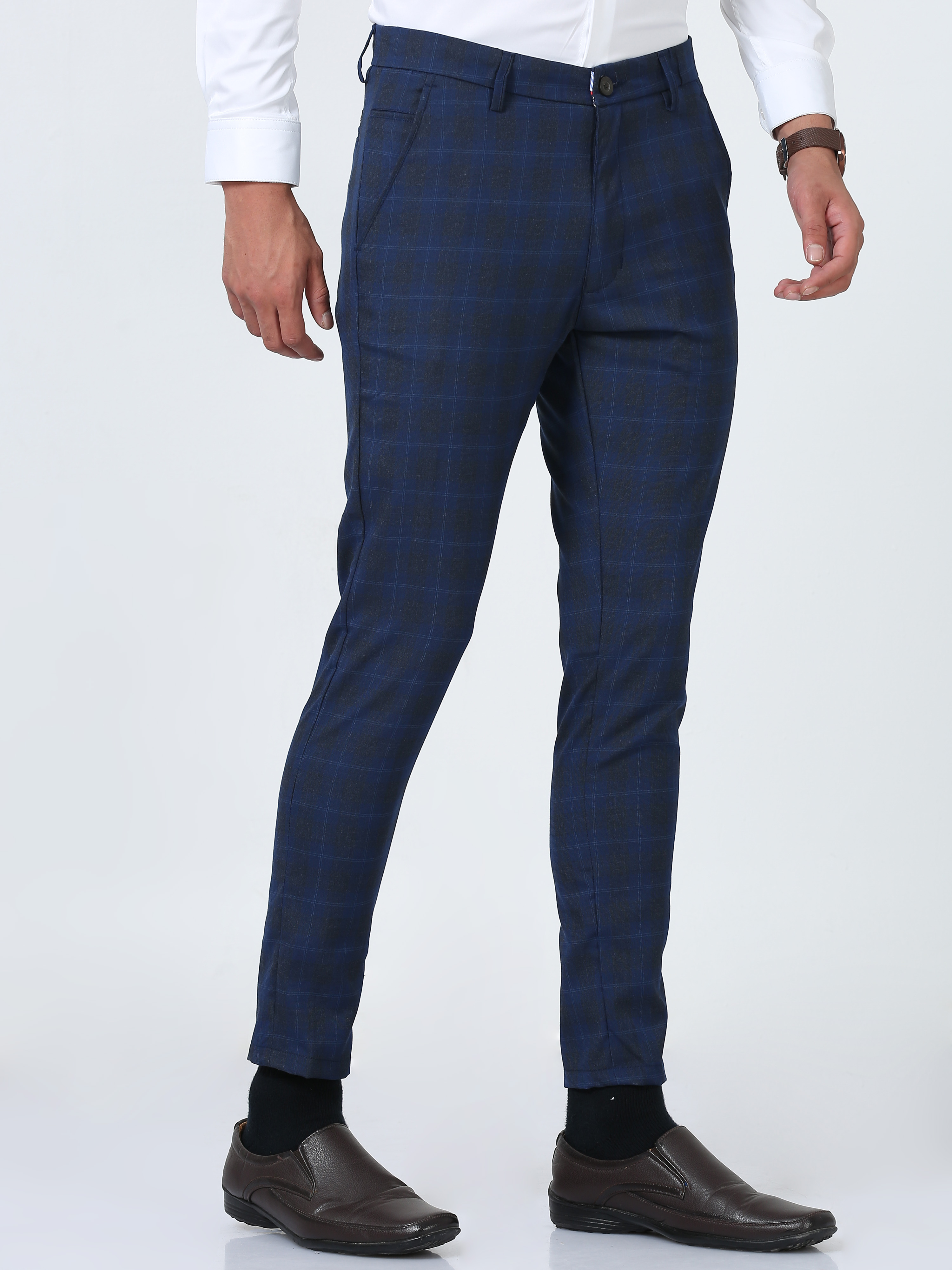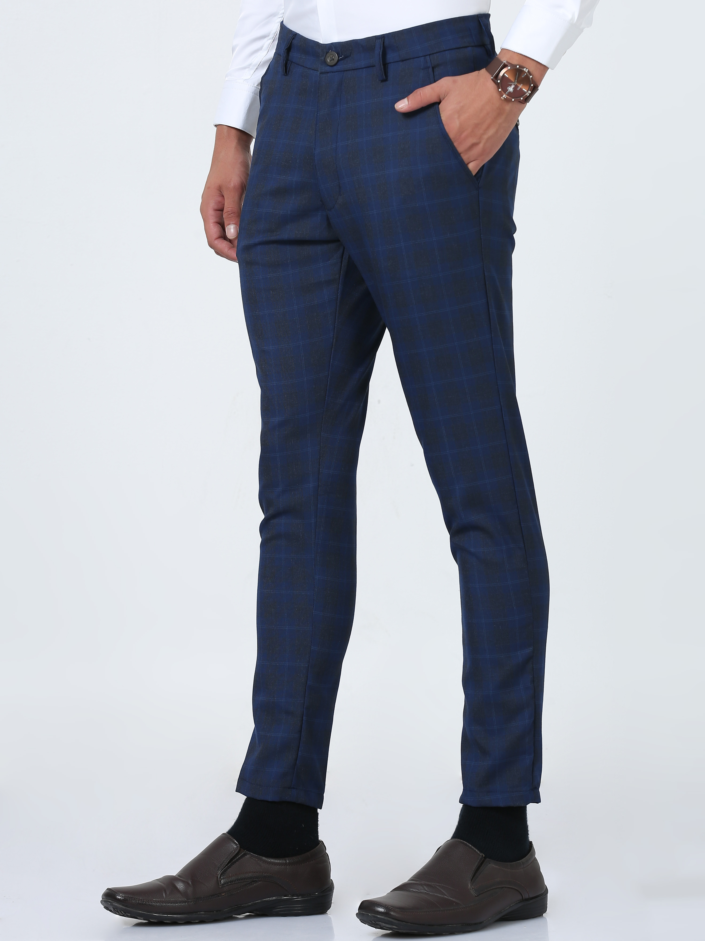 BOTTOM HUB FORMAL CHECK PANT FOR MEN ( NAVY BLUE )