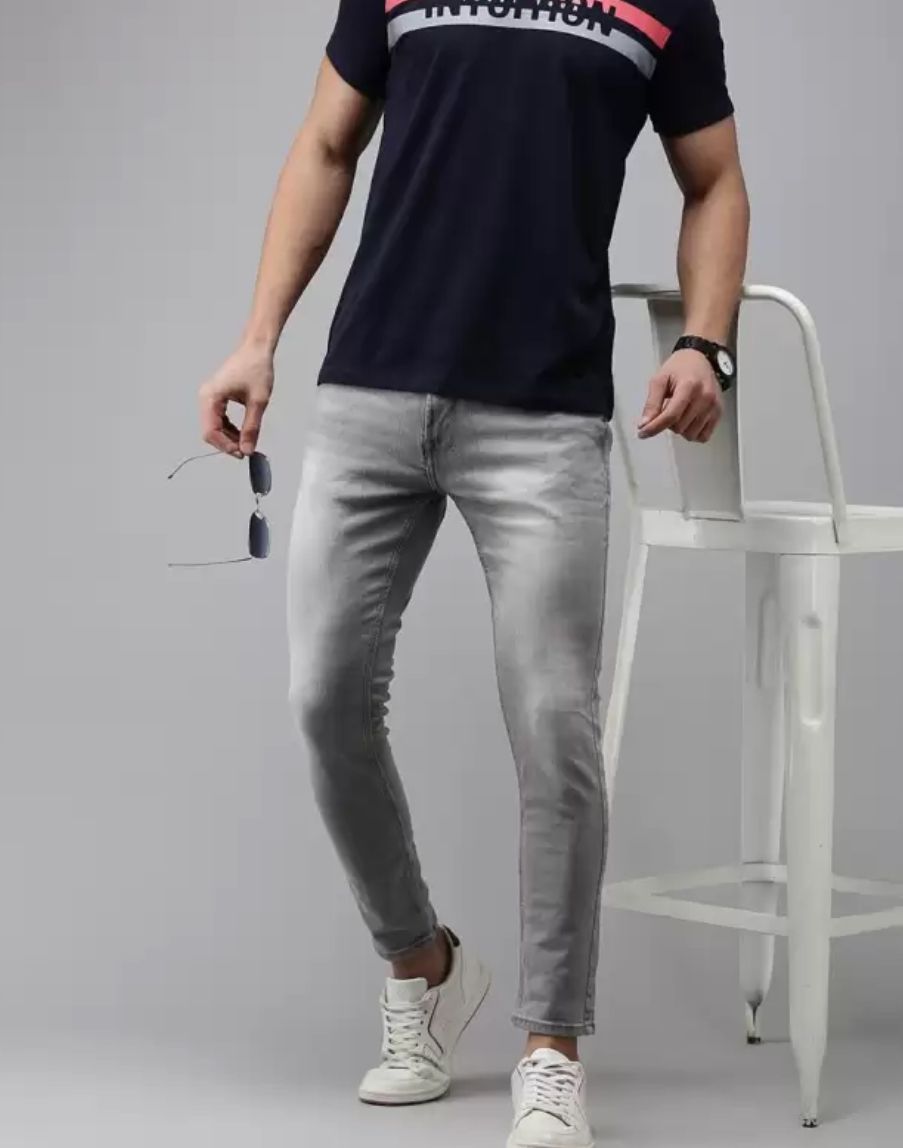 BOTTOM HUB PREMIUM EXPORT QUALITY JEANS FOR MEN ( LIGHT GRAY )