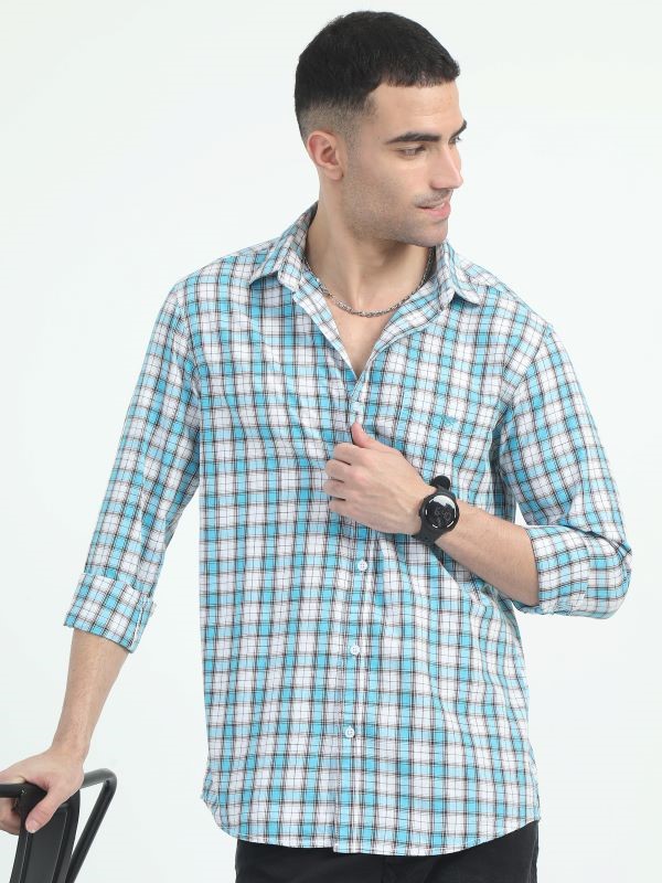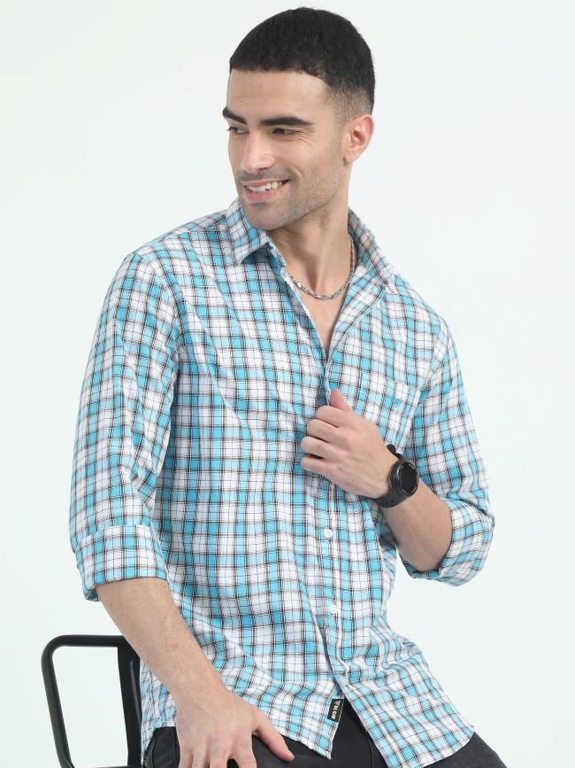 MR GLOW CHECK SHIRT ( BLUE AND BLACK )
