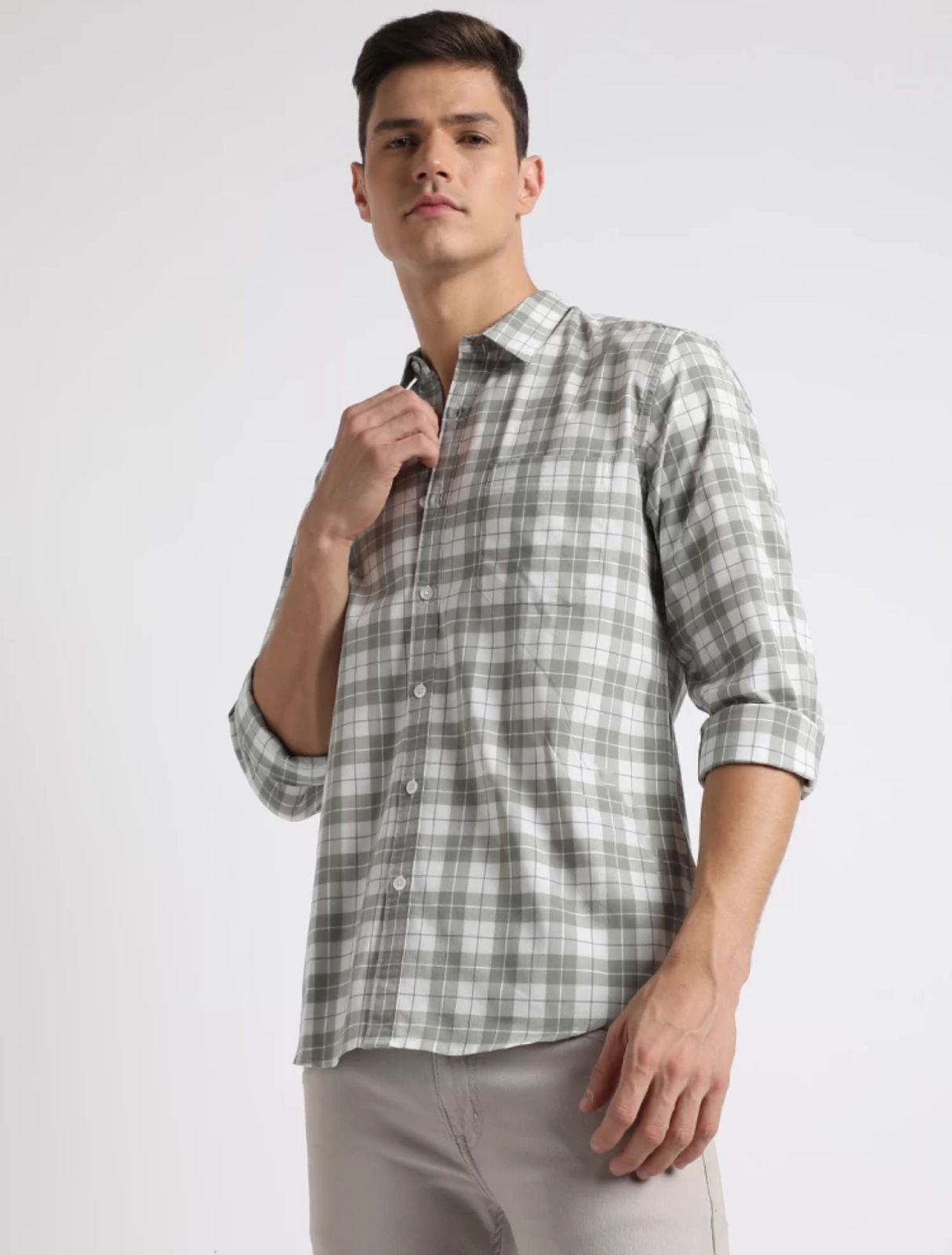 MR GLOW CHECK SHIRT ( GRAY AND WHITE )