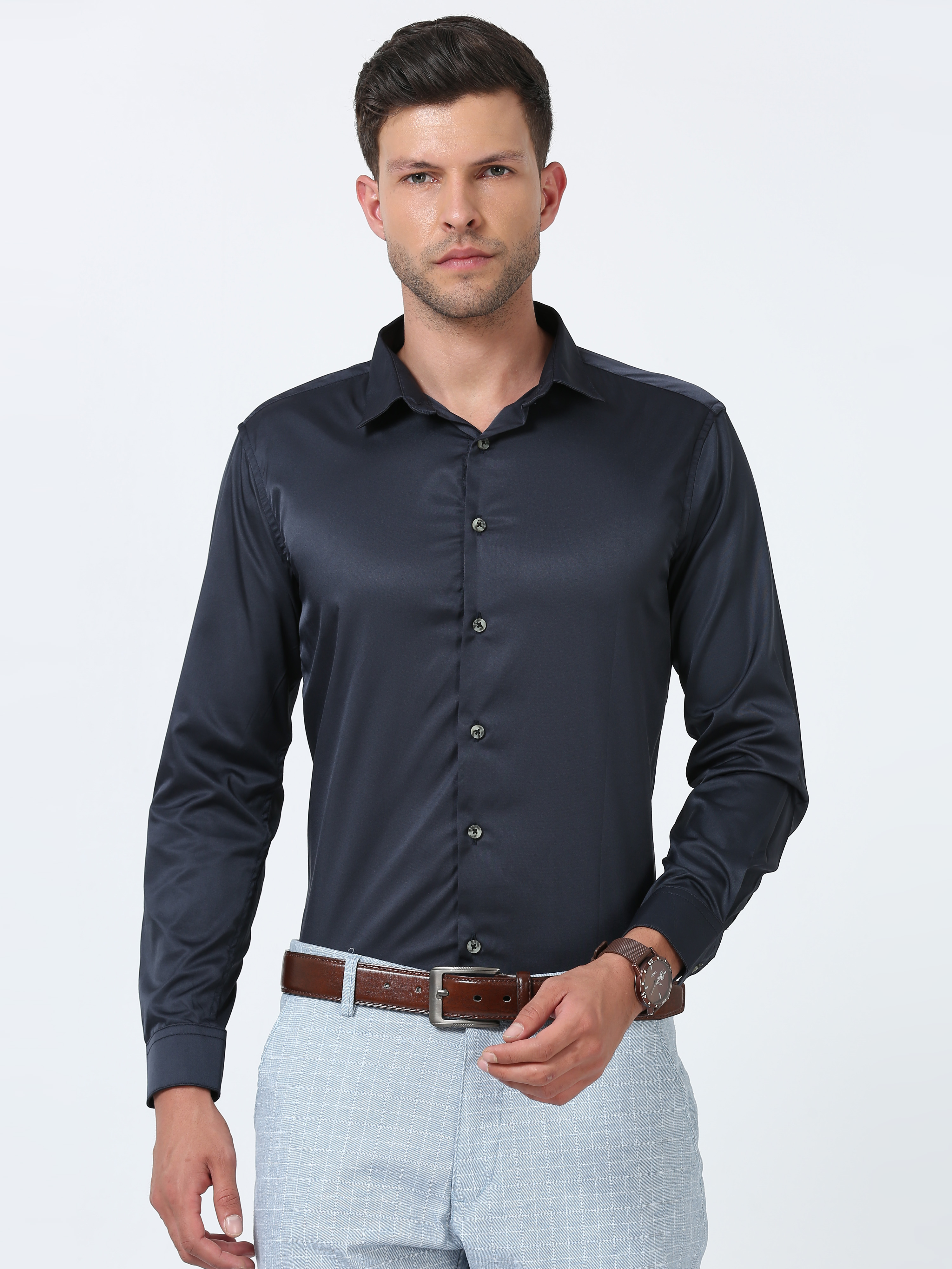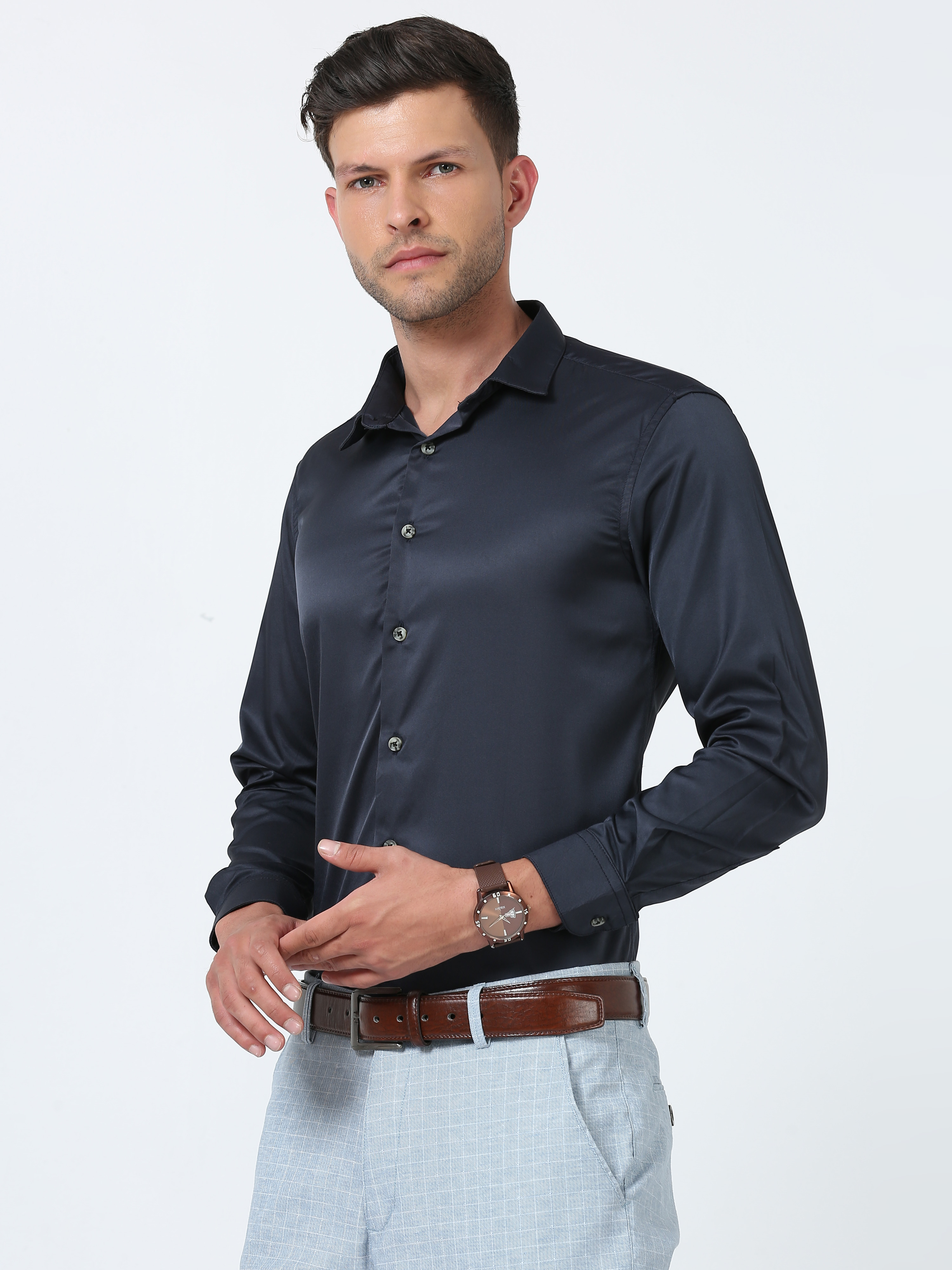 MR GLOW SATIN BLACK SHIRT FOR MEN