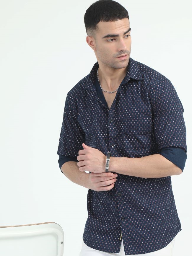 SEMI FORMAL SHIRT MR GLOW (NAVY BLUE)